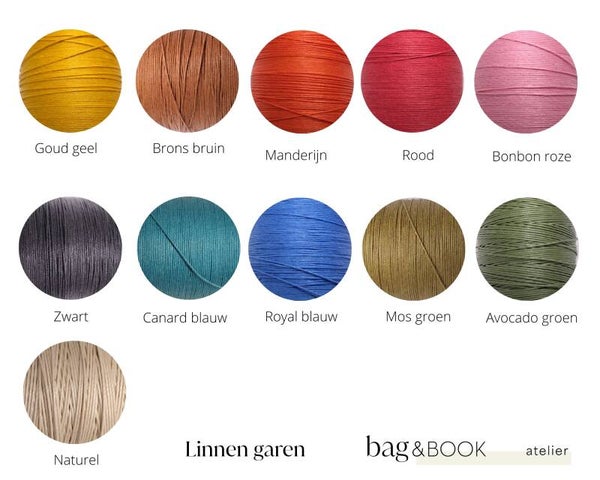 - Handgestikt door middel van de zadelsteek met gewaxed linnen cable van Fil au Chinois.