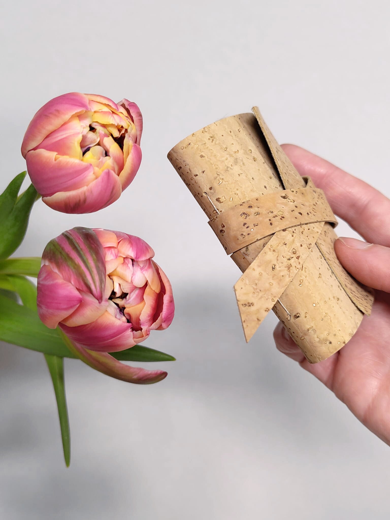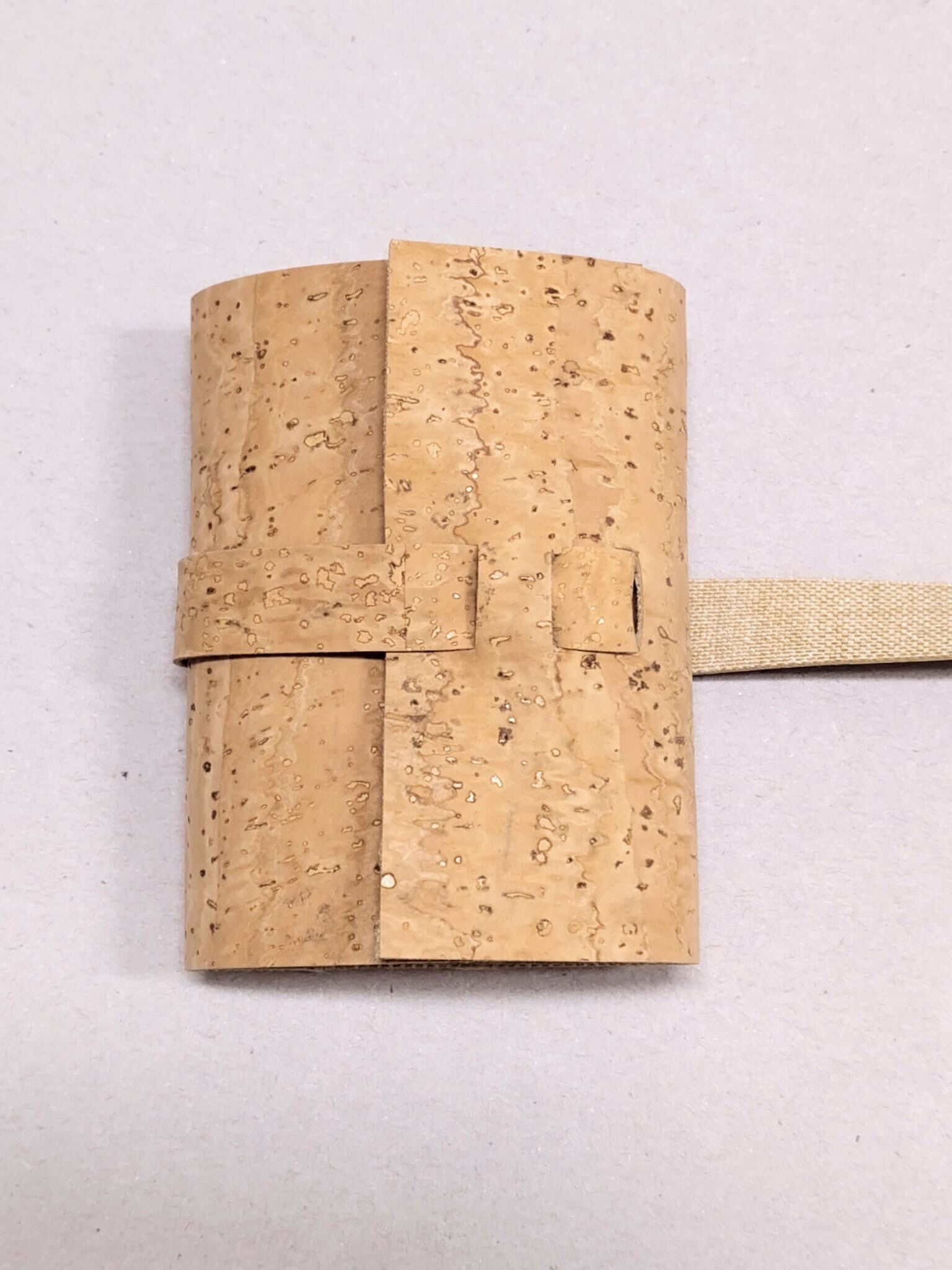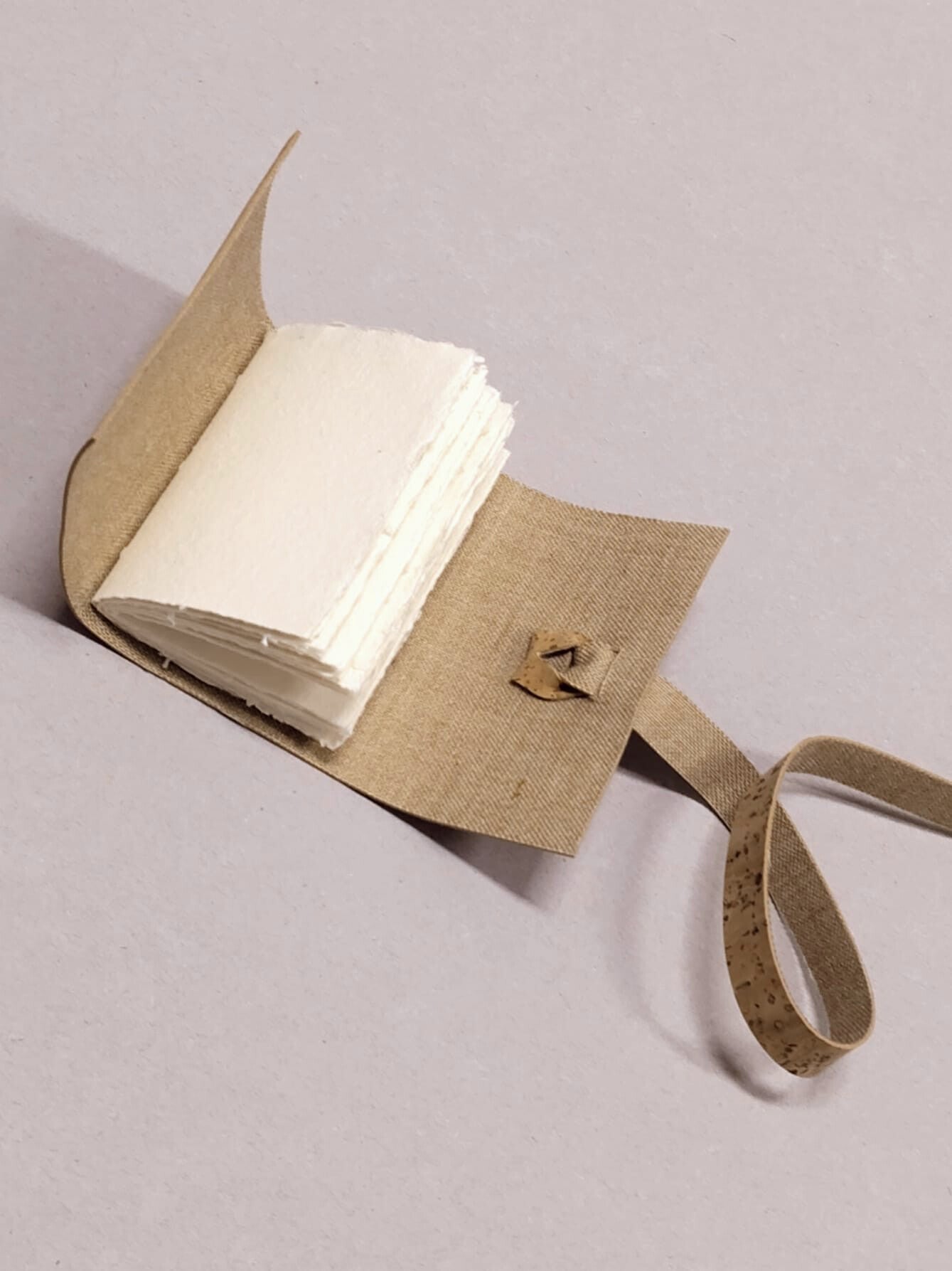 Een boekje van kurk met een wikkelsluiting. Gemaakt van prachtige materialen die zijn gemaakt met respect voor de natuur. Het binnenwerk bestaat uit 30 blanco pagina’s (60 kantjes) handgeschept 150 grams zuurvrij papier, gemaakt van gerecycled katoen.